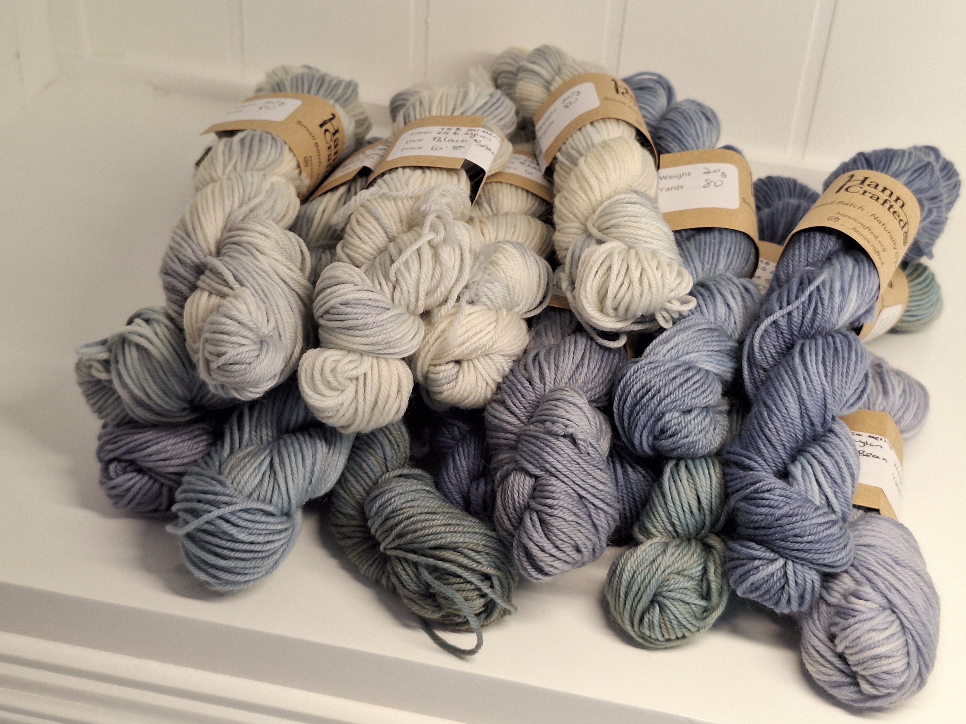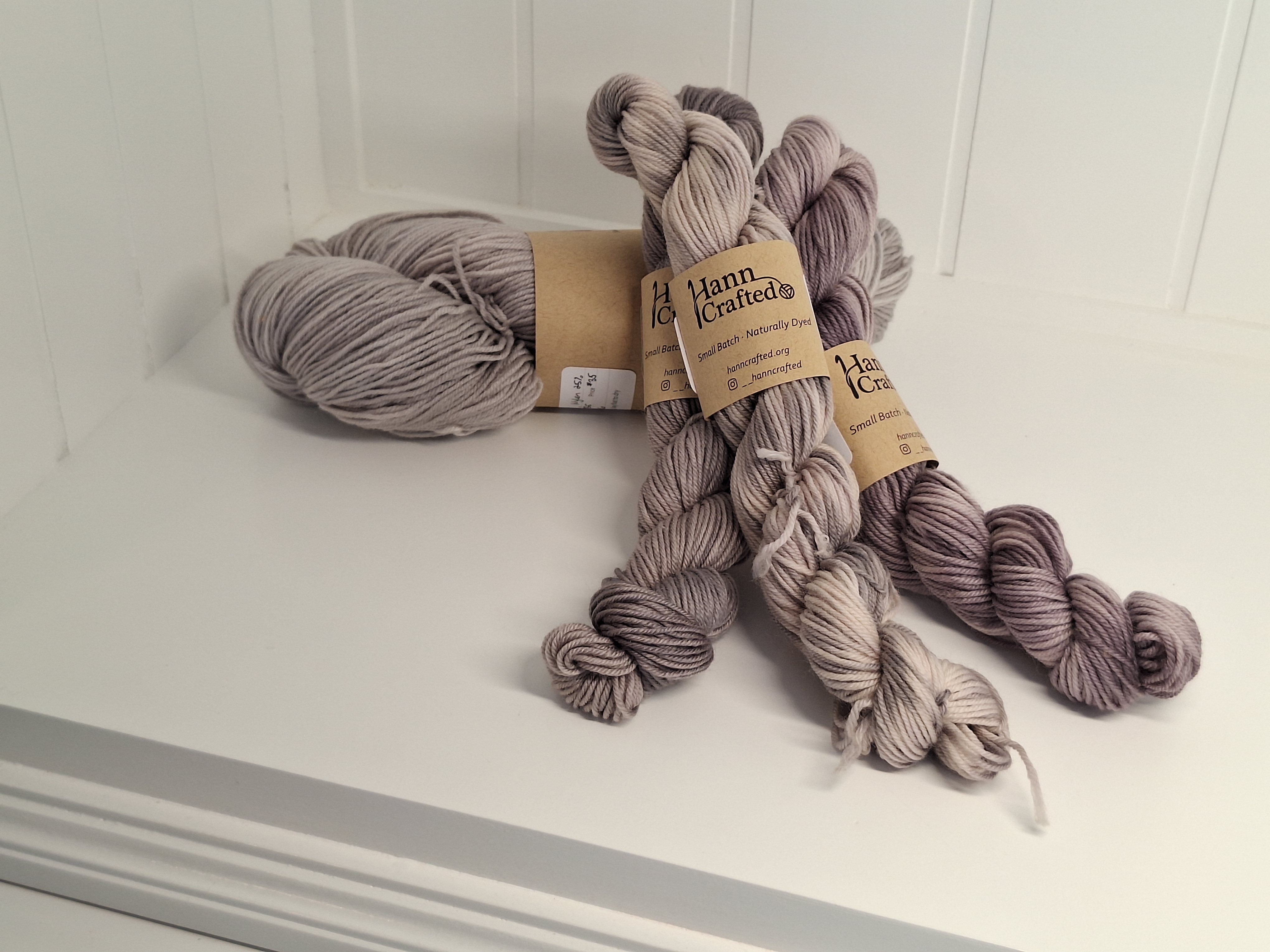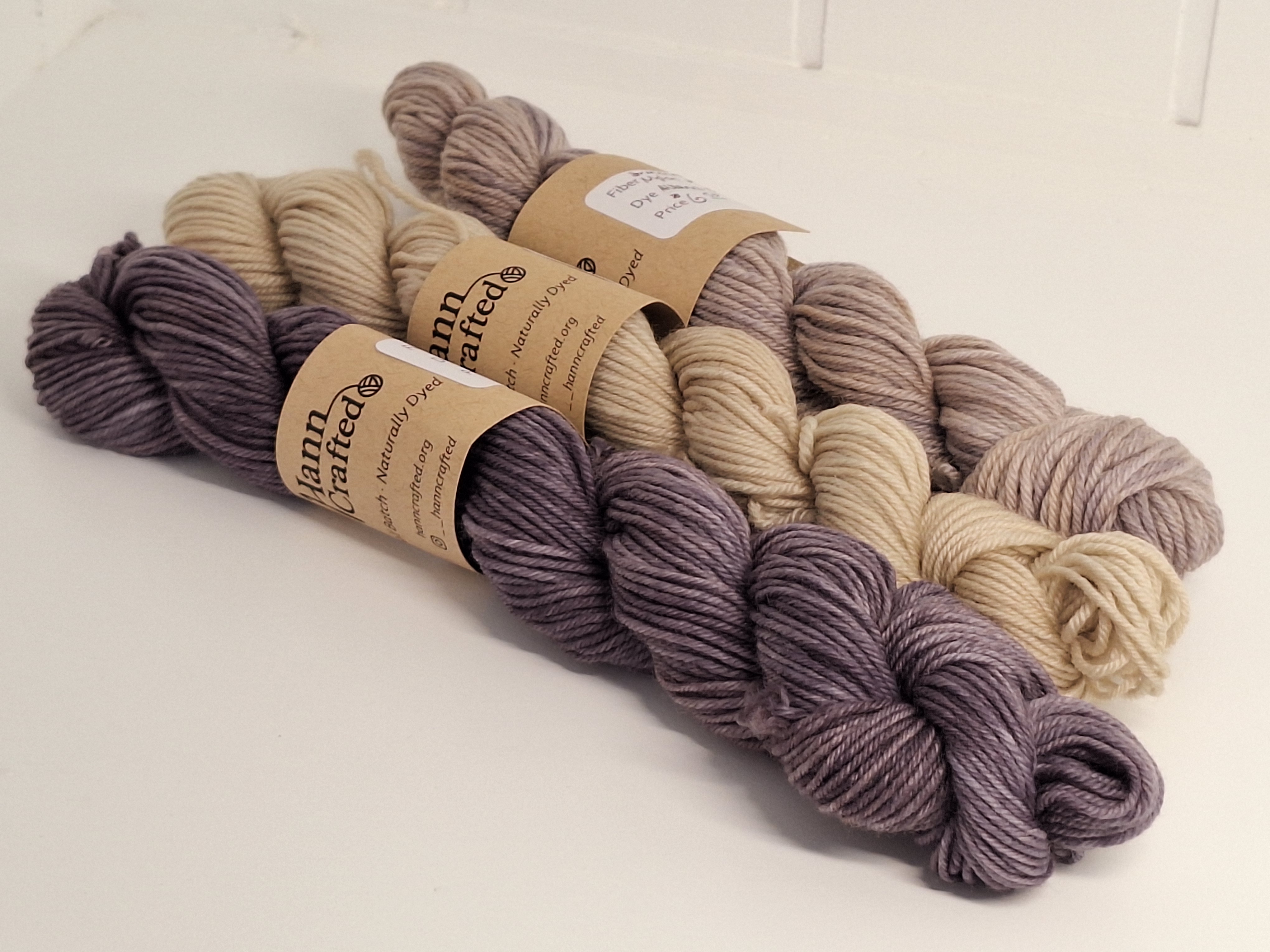 Each skein of naturally dyed yarn is unique, with slight variations in color that make it special. The photos here are examples of past dye batches. If something catches your eye, fill out an order request and I’ll gladly show you what I currently have available in a similar colorway or using the same dye materials.